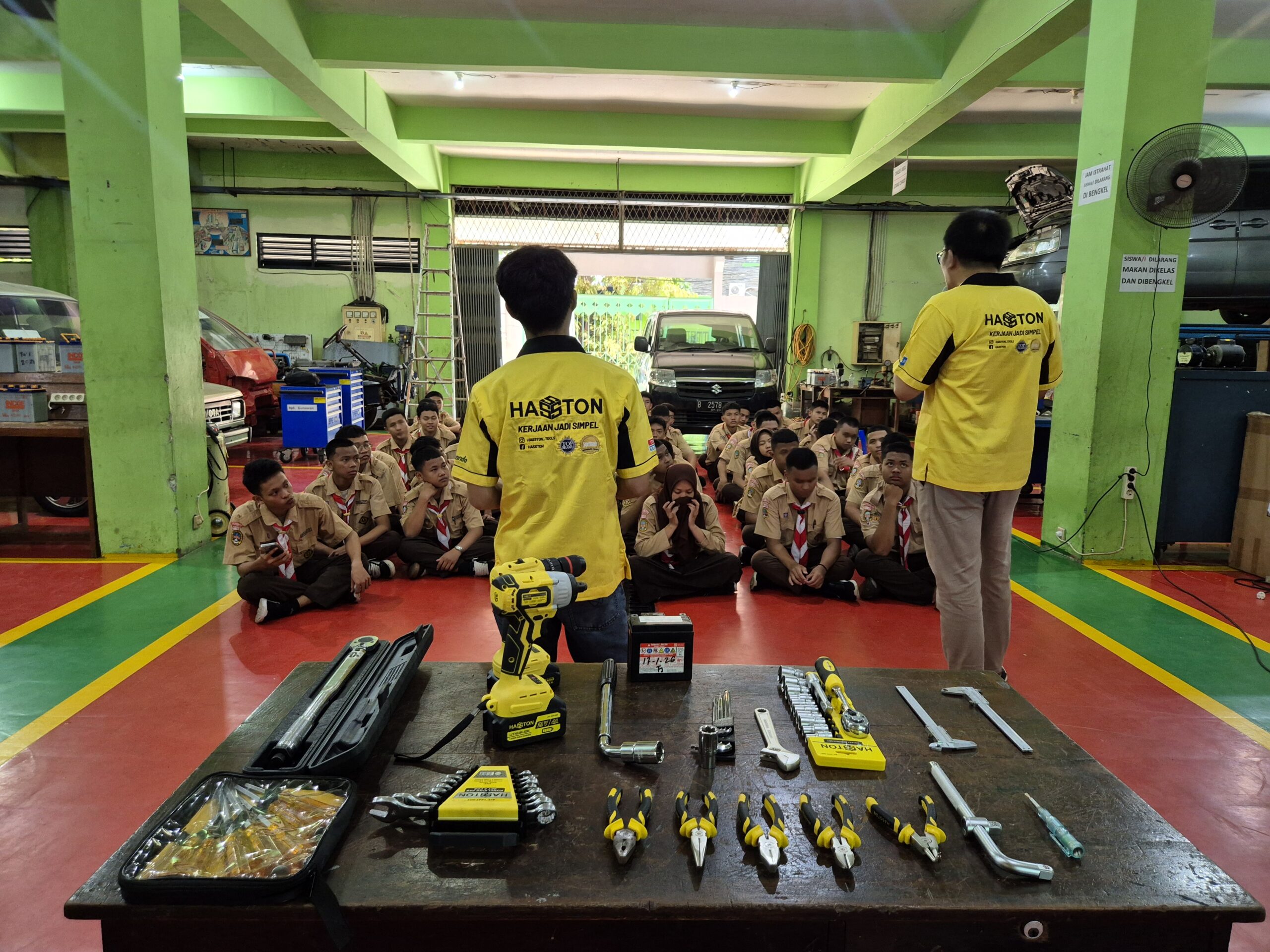 Kegiatan dibuka dengan pengenalan produk-produk andalan Hasston di bidang otomotif. Siswa-siswi diberikan pembekalan seputar Hand Tools seperti, kunci torsi, obeng tespen, vernier caliper, hingga power tools seperti cordless impact drill dan cordless impact wrench.