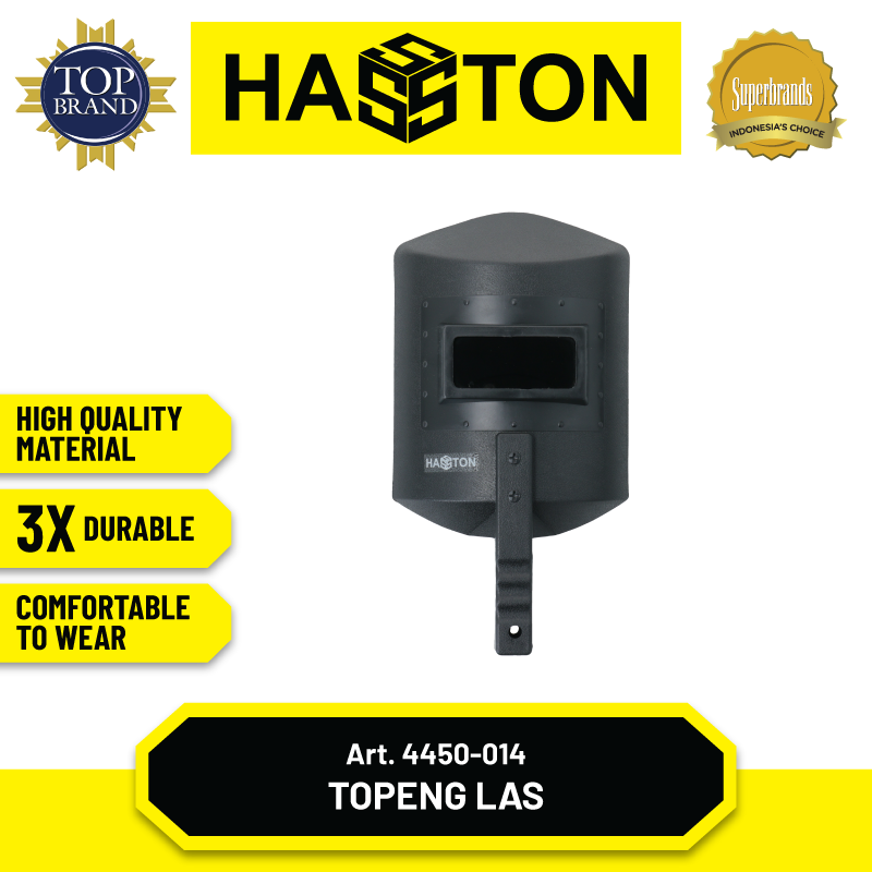 Topeng las ini berfungsi melindungi bagian wajah dari percikan las, panas pengelasan dan sinar las ke bagian mata. Topeng las ini terbuat dari bahan plastik yang tahan panas. Tersedia dengan spesifikasi sebagai berikut.